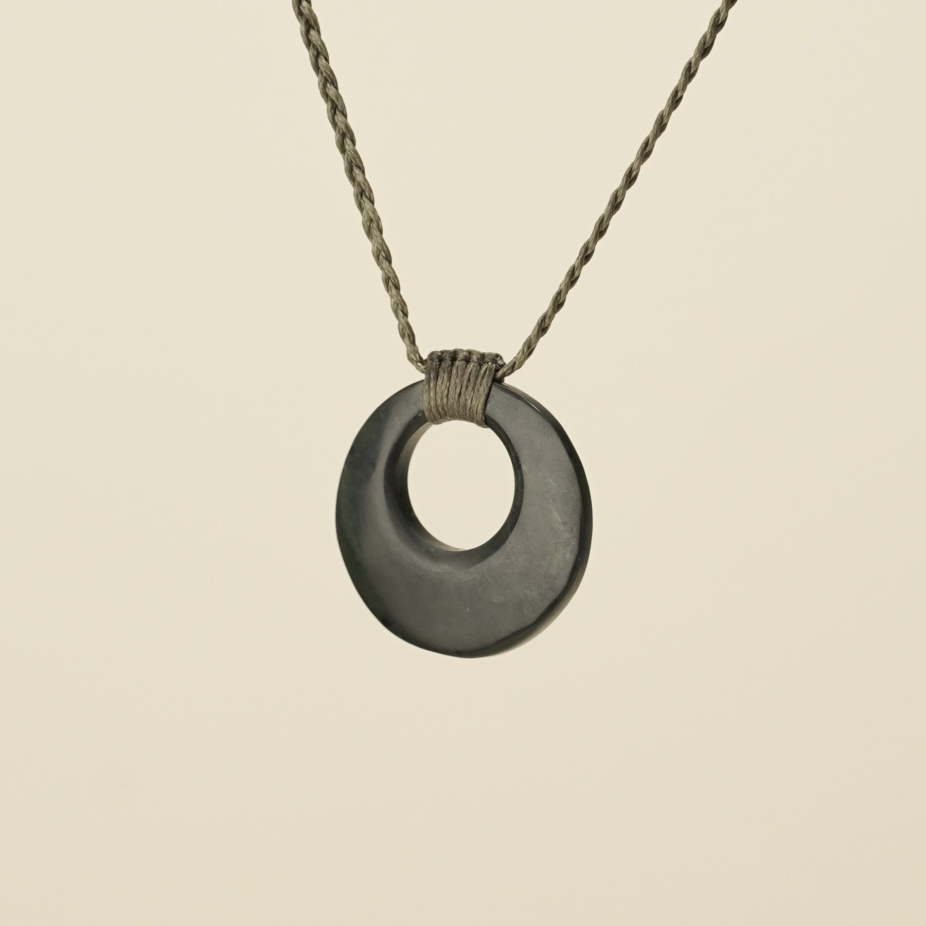 The small Porowhita pendant embodies the circle of life, symbolising self-discovery and life's continuous cycles. Carved from kawakawa greenstone, its rich green hues reflect the beauty of these journeys. Paired with an adjustable khaki handwoven wax cord and presented in an eco-friendly box, it's a thoughtful taonga with meaning and care cards included.