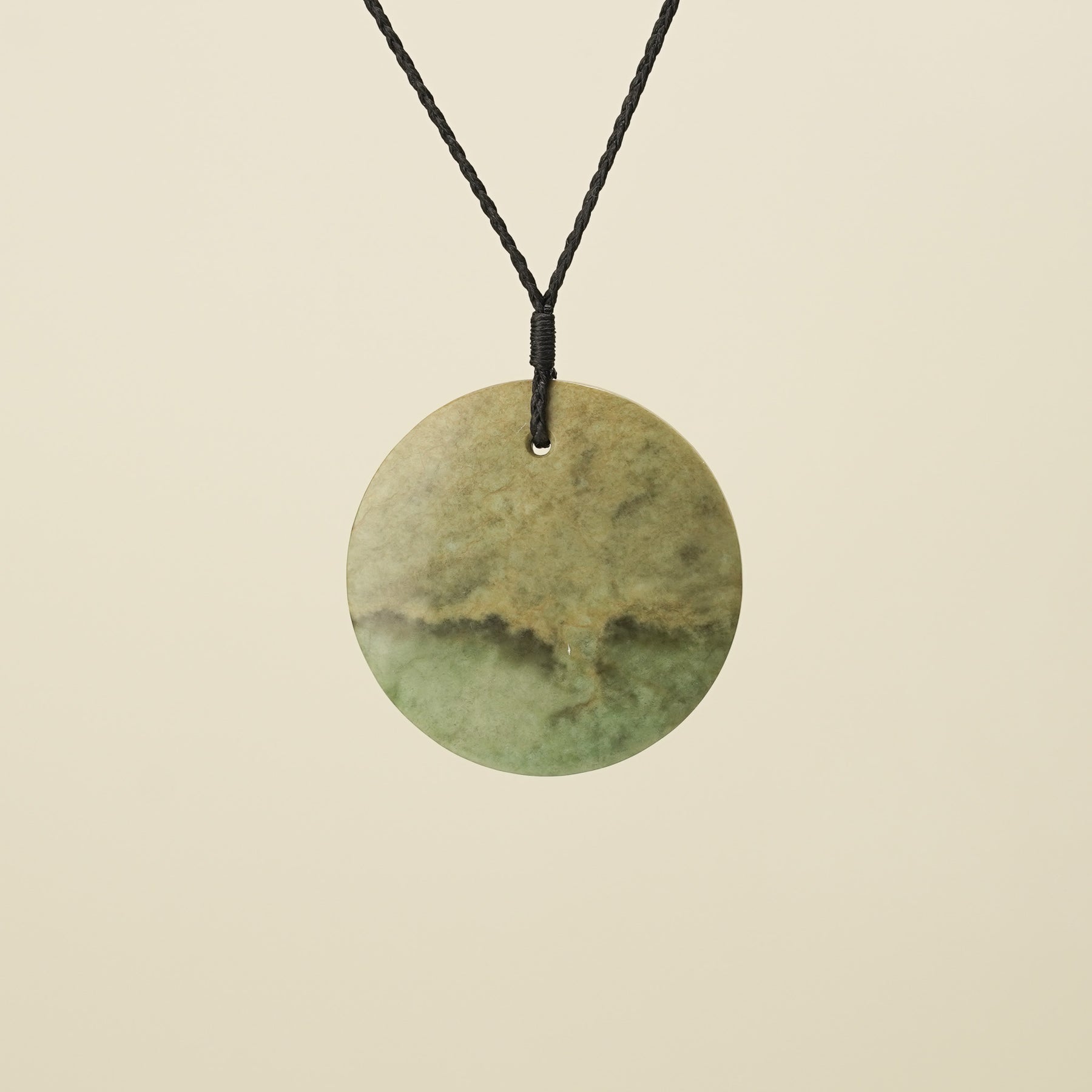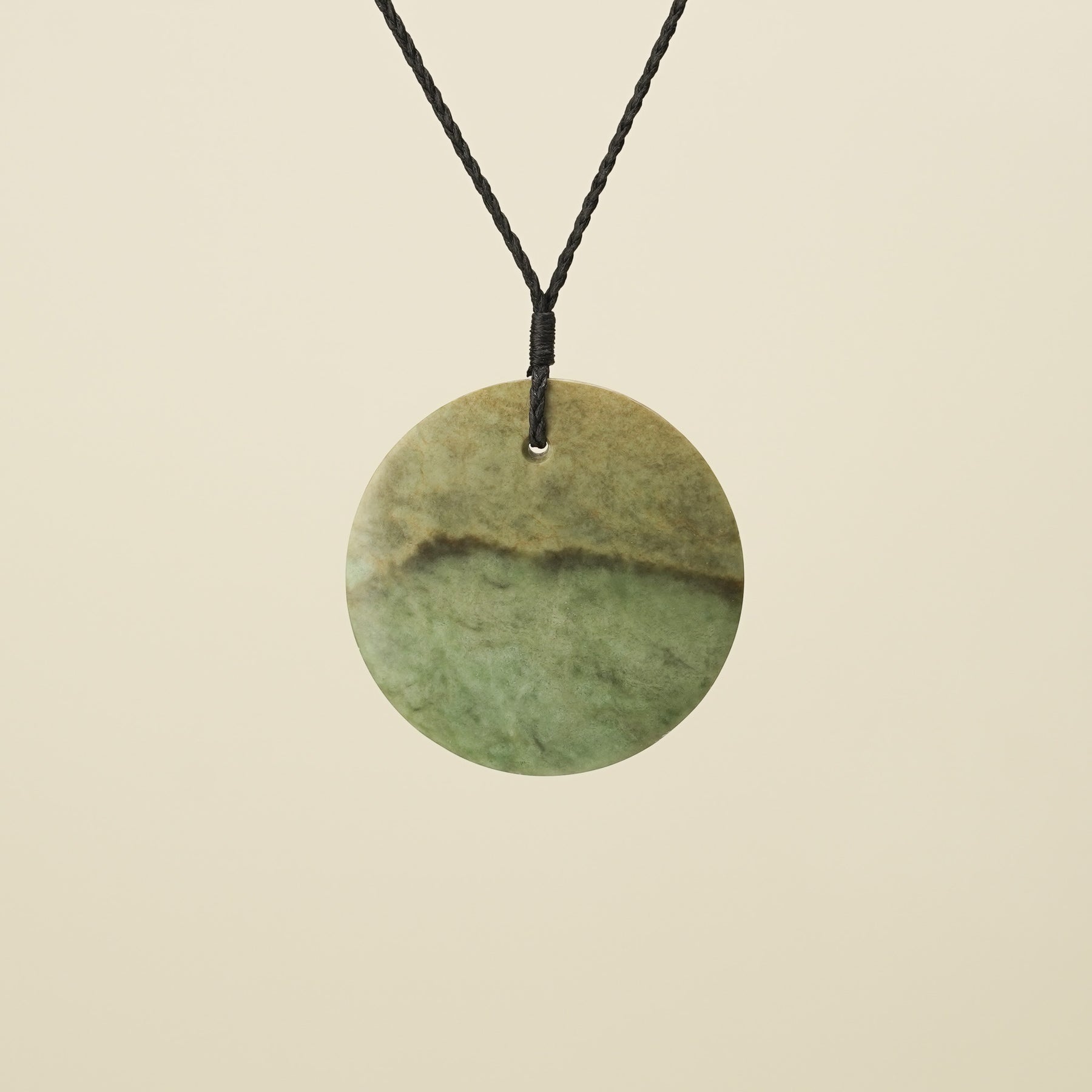 The large Porowhita pendant embodies the circle of life, symbolising self-discovery and life's continuous cycles. Carved from rich Raukaraka pounamu, its calm green tones, and yellow clouding with a matte finish, beautifully highlight the natural beauty of Aotearoa’s pounamu. Paired with an adjustable black handwoven wax cord and presented in an eco-friendly box, it's a thoughtful taonga with meaning and care cards included.
