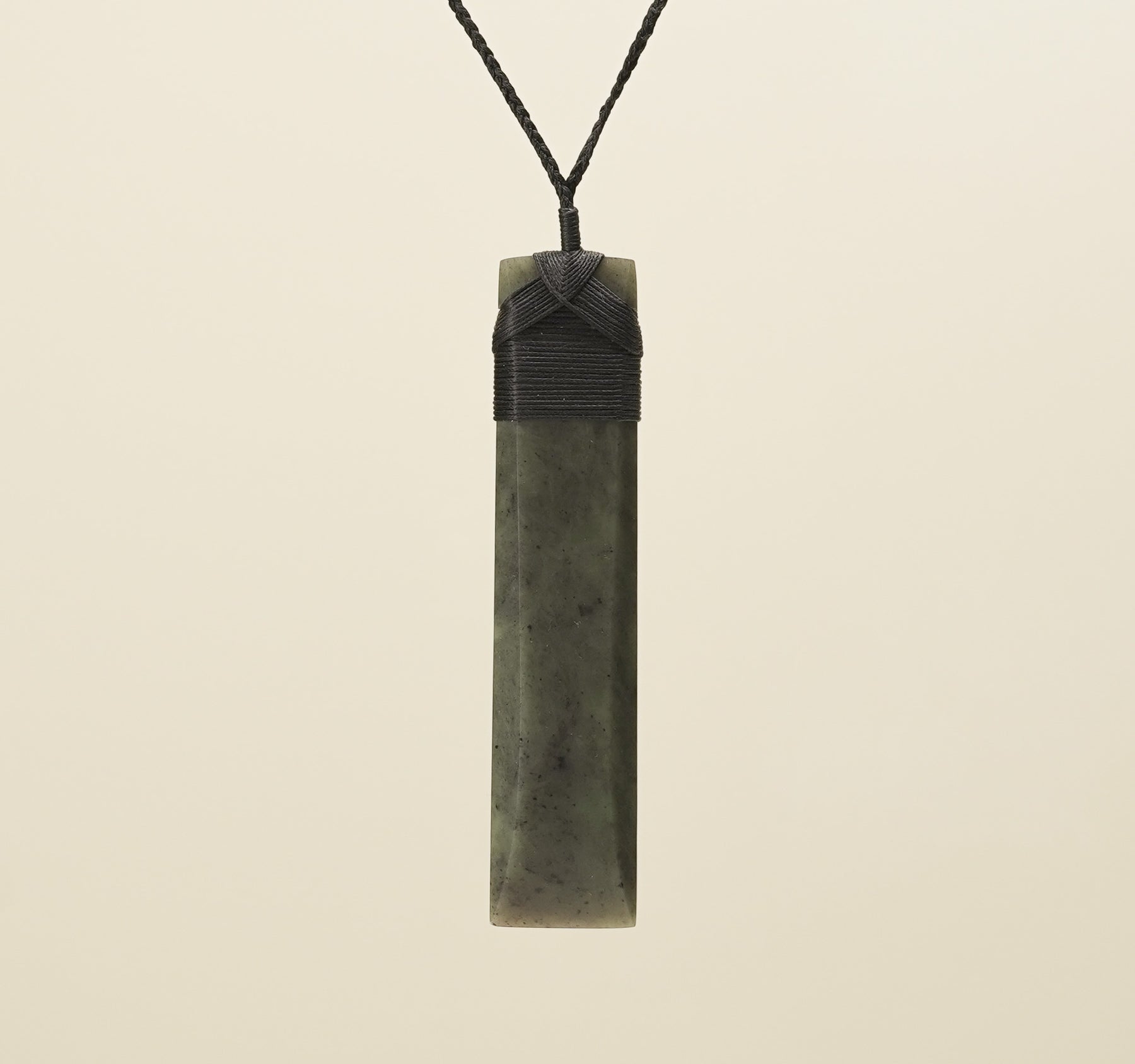 Toki Hapopo Pounamu Matte Extra Large Pendant, Black Binding