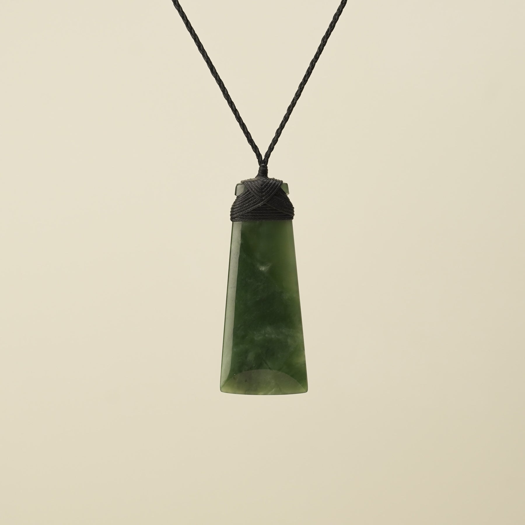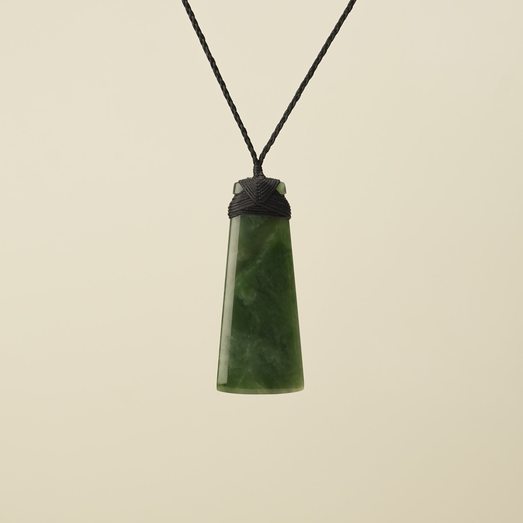 Carved in our Arrowtown workshop from rich Kahurangi pounamu, this one-off large Toki pendant symbolises strength and leadership. Its bright green tones enhanced by its polished finish, beautifully highlight the natural beauty of Aotearoa’s pounamu. Paired with an adjustable handwoven black cord for a personalised fit, this remarkable Toki is elegantly presented in an eco-friendly box, accompanied by cards detailing its meaning and care—a truly cherished taonga.
