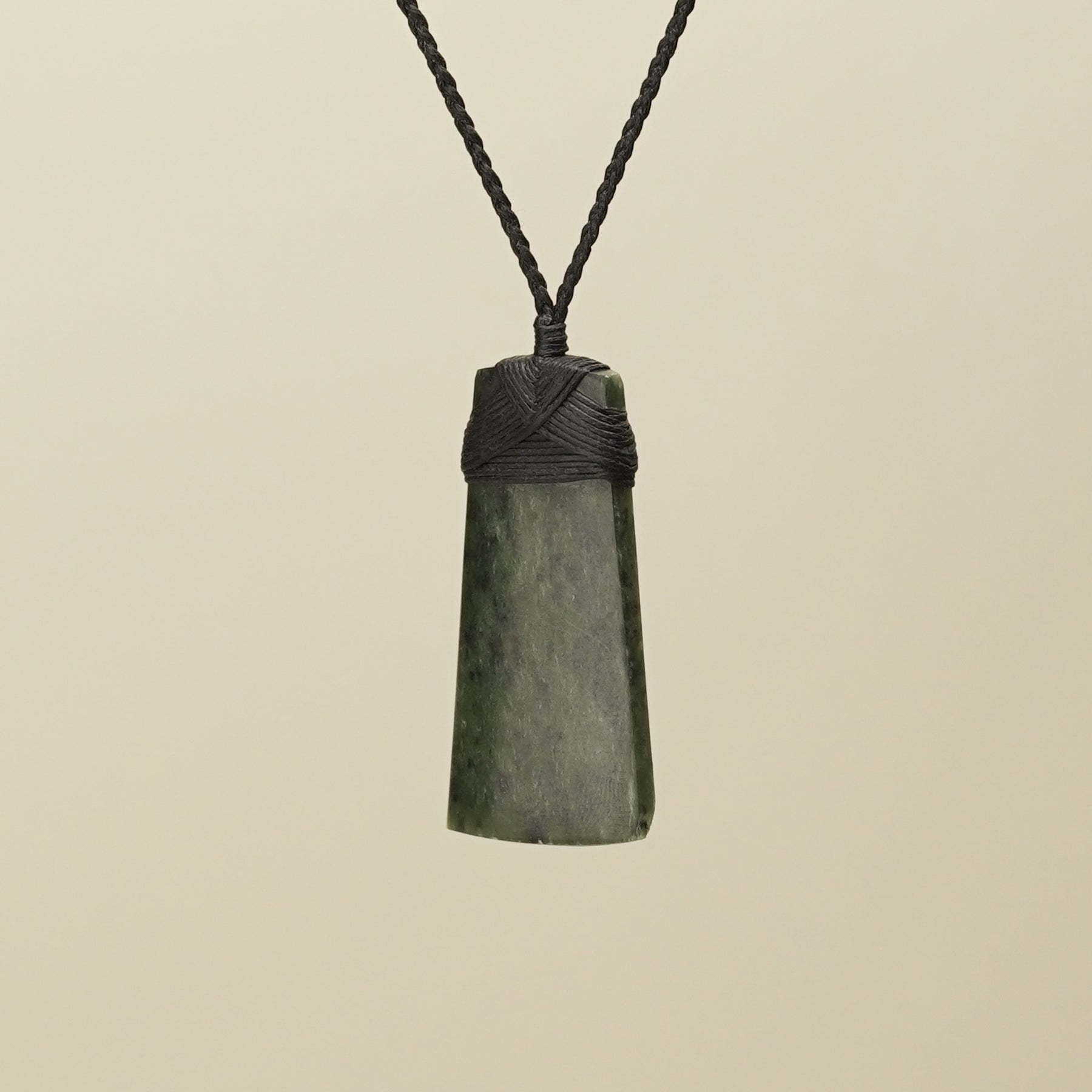 Paired with an adjustable handwoven black wax cord for a personalised fit, this remarkable Toki is elegantly presented in an eco-friendly box, accompanied by cards detailing its meaning and care—a truly cherished taonga.