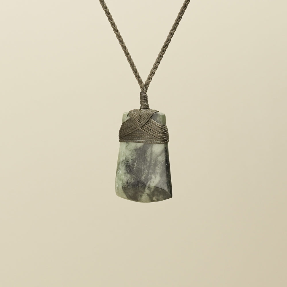 Paired with an adjustable handwoven khaki wax cord for a personalised fit, this remarkable Toki is elegantly presented in an eco-friendly box, accompanied by cards detailing its meaning and care—a truly cherished taonga.