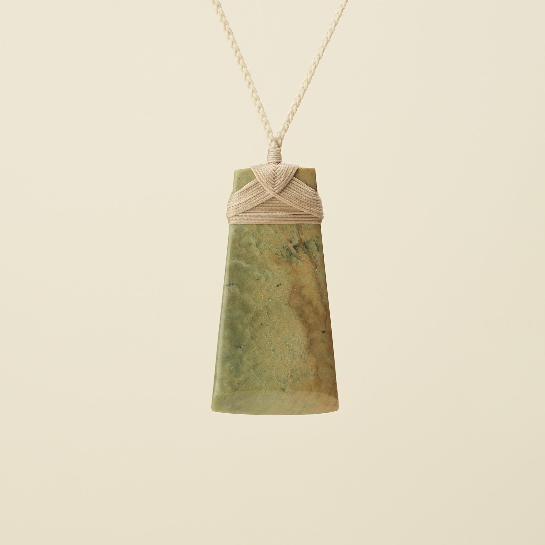 Toki Raukaraka Pounamu Large Pendant, Tan Binding