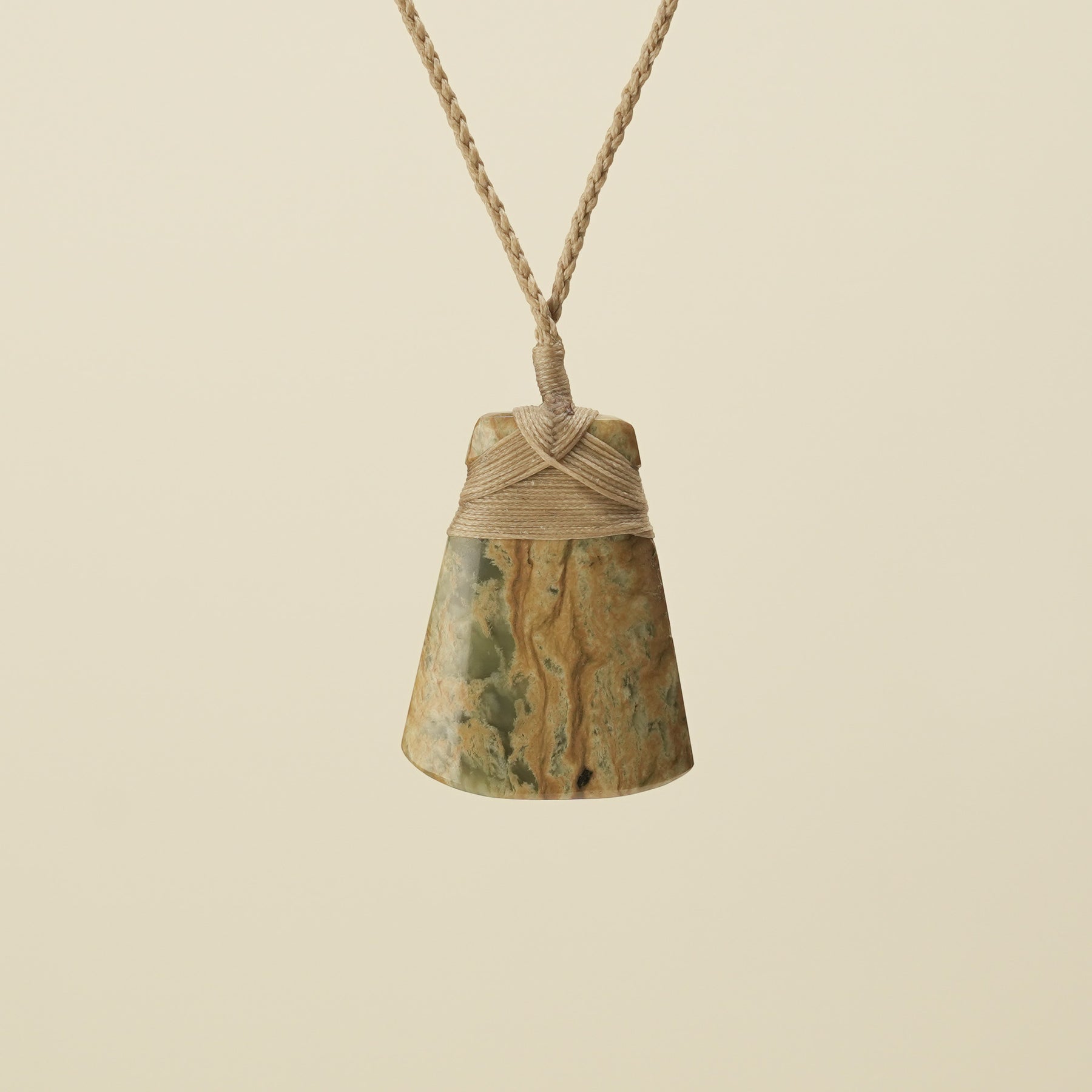 Toki Raukaraka Pounamu Medium Pendant, Tan Binding