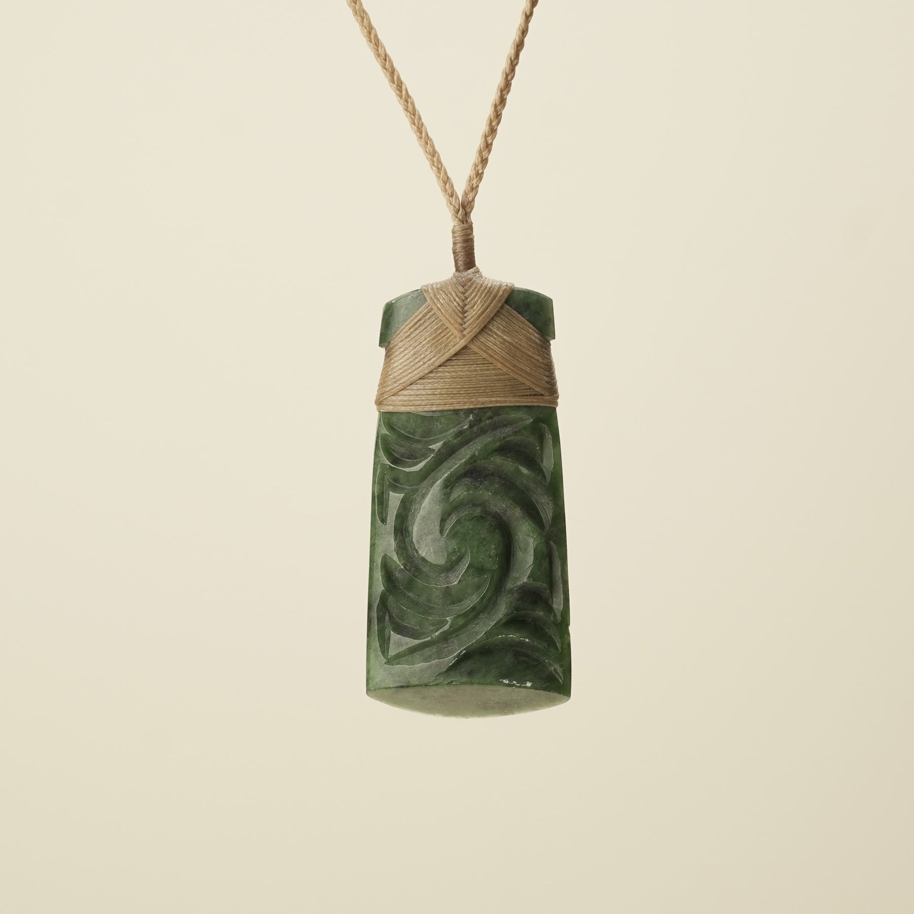 Toki Whakrei Carved Kawakawa Large Pounamu Pendant